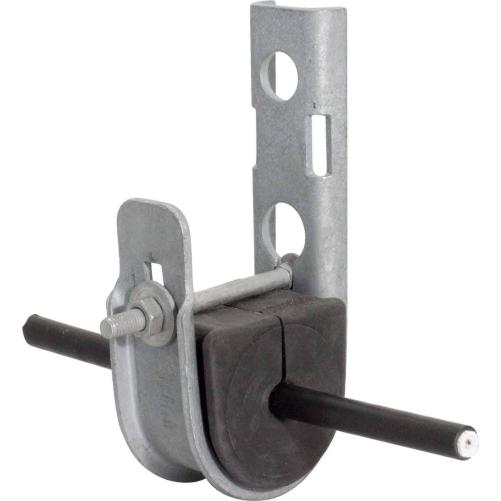 Les dispositifs de suspension de la famille J se composent d'un berceau en acier galvanisé et d'une fourrure de protection élastomère rapportée. La fermeture du berceau se fait par serrage d'un boulon.