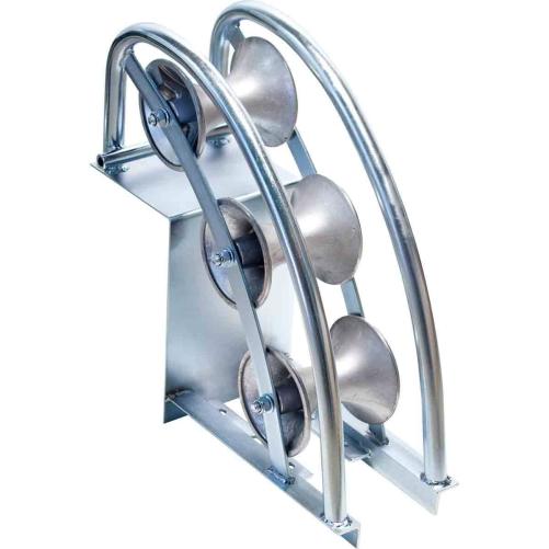Galet à 3 poulies qui s'adapte à tout type de câble. Il s'utilise horizontalement ou verticalement et est en acier galvanisé.