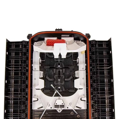 Le BPEO taille 2 est un boîtier de protection d'épissures étanche permettant jusqu'à 168 épissures mécaniques et 336 épissures fusion. L'organisateur placé sous le plateau des cassettes contient 28 pas qui permettent le stockage des fibres, des tubes ou des microstructures en passage.