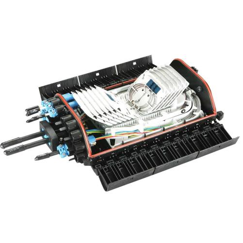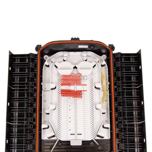 Le BPEO taille 2 est un boîtier de protection d'épissures étanche permettant jusqu'à 168 épissures mécaniques et 336 épissures fusion. L'organisateur placé sous le plateau des cassettes contient 28 pas qui permettent le stockage des fibres, des tubes ou des microstructures en passage.