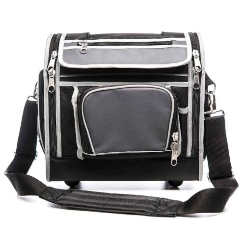 Valise porte-outils textile avec rabat amovible répondant aux critères de qualité attendus par les spécialistes télécom. Elle bénéficie de nombreuses poches de rangement à l’extérieur, d'une cartouchière pour organiser l’outillage et de rangements intérieurs pour les appareils de mesure.