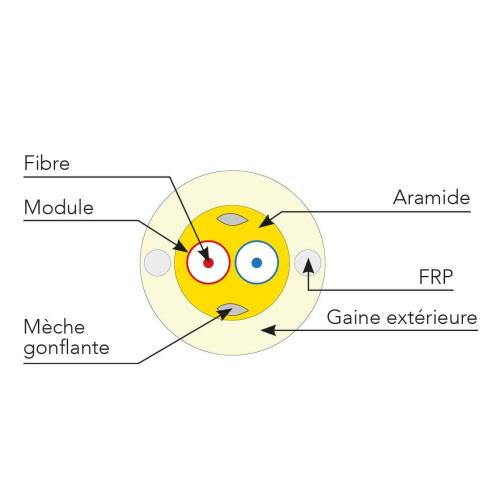 - Étanchéité : le câble est étanche longitudinalement grâce à la présence de mèches gonflantes