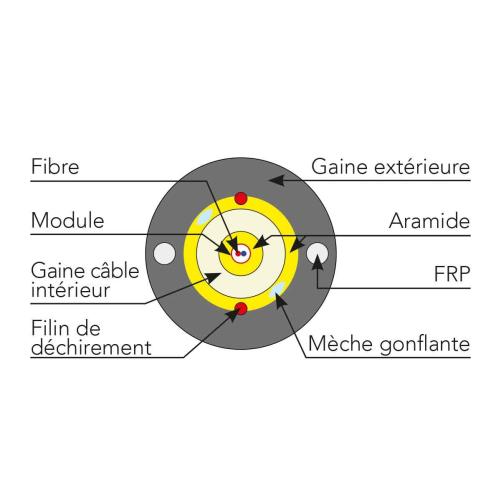 - Un seul câble de branchement pour des configurations FTTH en aérien, sur façade, tirage en conduite sur faible distance ou installations en intérieur