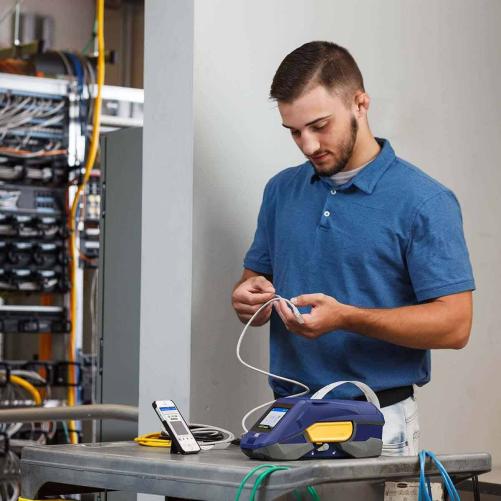 L'imprimante portable BRADY M611 offre la possibilé de préparer en amont les étiquettes ou de convevoir directement sur le terrain grâce à son application "étiquettes express" disponible sur smartphone. L'étiqueteuse permet d'imprimer des étiquettes de taille supérieure et de faciliter l'identification professionnelle de câbles télécoms et data.