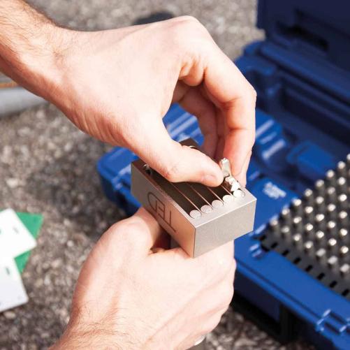 Ce coffret de jeu de frappe contient tous les accessoires pour effectuer des marquages par frappe à froid sur les étiquettes de repérage, notamment en chambres souterraines et sur poteaux.