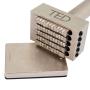 Disposant de 5 lignes pouvant accueillir chacune 12 caractères de 3mm, le marteau à frapper permet de retranscrire un maximum d'informations en un temps réduit. Une fois les caractères en place, le marquage se fait à l'aide d'une massette en frappant sur le marteau.
