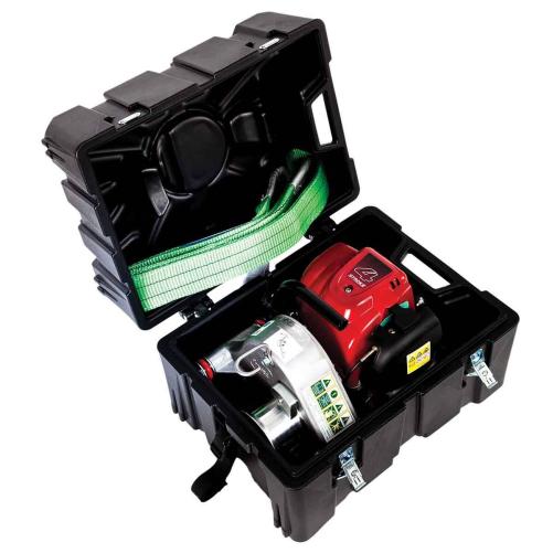 Idéal pour transporter votre treuil, il est de plus doté d'une courroie de chaque côté pour l'attacher dans le véhicule.