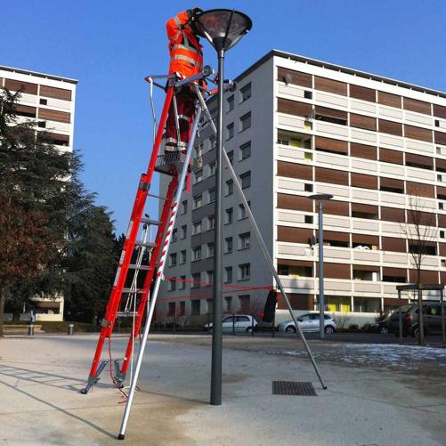 - Gain de sécurité : plateforme stabilisée, pas de risque de glissement le long du poteau