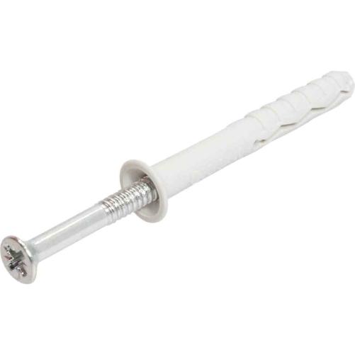 Cheville à clou avec collerette tête fraisée. La vis est en acier zingué blanc et possède une empreinte Pozidriv.