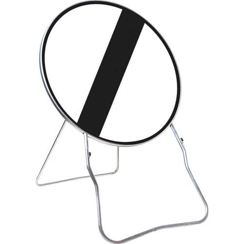 Ce panneau de chantier sur pied lyonnais en acier galvanisé permet d'indiquer la fin des interdictions précédemment signalées. Le blocage se fait automatiquement grâce au pied arrière par ergots, sur position ouverte ou fermée. Le panneau est à monobloc à double bords, rigide et non agressif.