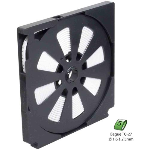 Les bagues OPTO-Markers TC-27 sert au repérage des câbles optiques 1,6 à 2,5 mm de Ø extérieur, avec impression du numéro/lettre sur les 2 faces des bagues. Ils permettent aussi d'identifier les tubes et micromodules ainsi que les cordons optiques de 1,6 à 2 mm.