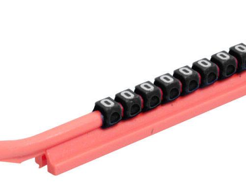 Les cavaliers sont disposés sur leur tige de montage avec des intervalles permettant de les glisser individuellement sur le câble à repérer.