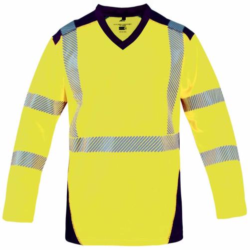 Tee-shirt haute visibilité ML jaune/bleu marine Cl.3 T2S T.M