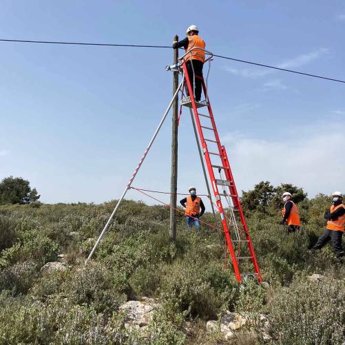 L'échelle sans appui d'AUDINNOV représente une solution légale, efficace et sécurisée pour permettre aux techniciens télécoms d'intervenir en hauteur sur les poteaux dans le respect des normes.