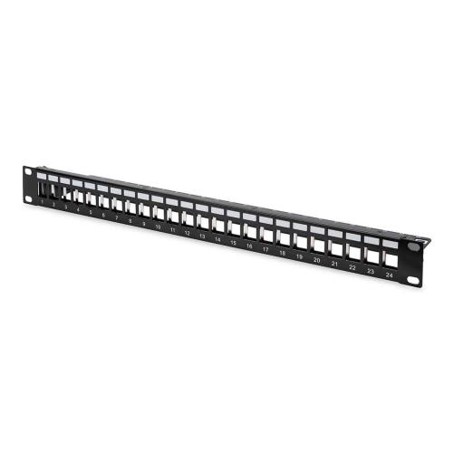 Panneau de brassage RJ45 DIGITUS® 24 ports blindé, conçu en acier laminé à froid de 1,5mm, pour la connexion de modules Keystone rj45 et des coupleurs Digitus® blindés.