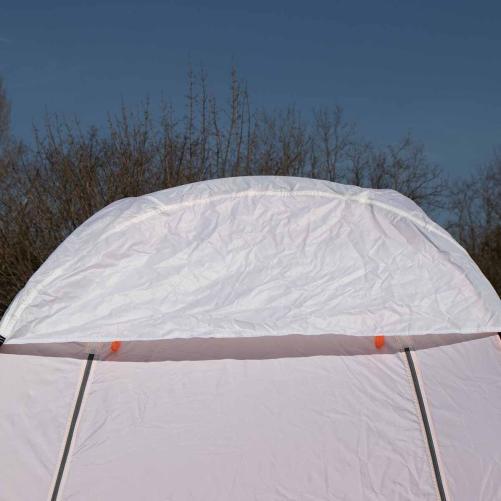- Les bandes auto-réfléchissantes de séparation largeur 25mm entre les tissus blancs et orange sur le tour de la tente, lui confèrent une meilleure visibilité/sécurité