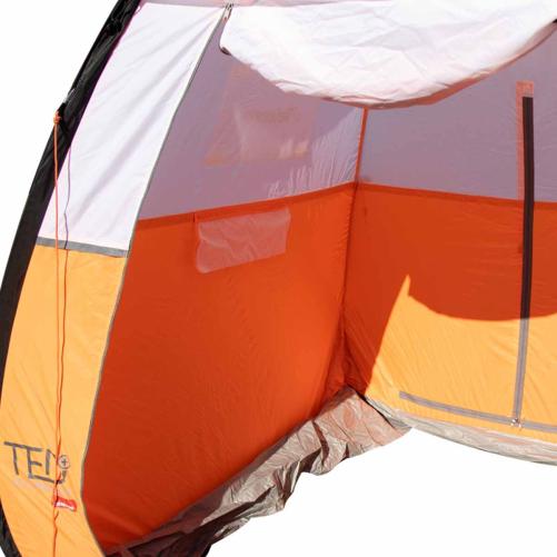 - Entrée via une grande porte zippée sur la face avant de la tente