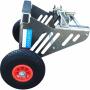 Chariot de transport compatible avec les modèles Aérostep 4,9 mètres et Aérostep 6 mètres de la marque AUDINNOV. Ses roues larges facilitent les déplacements sur les chantiers. Le chariot dispose d'un système d'accroche pour fixer et stabiliser l'échelle afin d'effectuer le transport facilement.