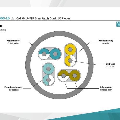 Le cordon de brassage RJ45 CAT6A U/FTP permet un câblage flexible et peu encombrant sur votre réseau.