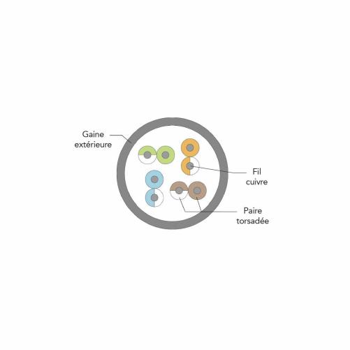 Ce cable categoria 6 est particulièrement adapté au deploiement du câblage structuré de bâtiments dans le secteur secondaire et tertiaire.