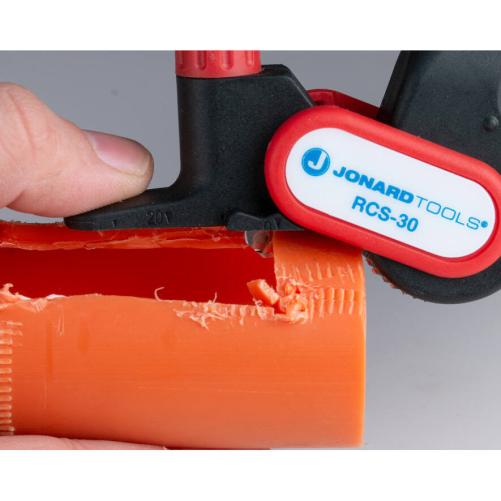 Le coupe-tube RCS-30 de JONARD est destiné à créer des fentes et fenêtres dans les tubes et conduits robustes de plus de 25 mm de diamètre. La lame peut pénétrer les parois en PVC, PE, caoutchouc et autres allant jusqu'à 5 mm d'épaisseur.