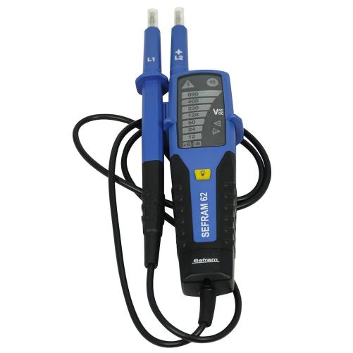 Le détecteur de tension et testeur de continuité SEFRAM62 conforme à la norme CEI 61243-3 permet de contrôler l'absence de tension pour la sécurisation des installations. Ses pointes de touches IP2X permettent à l'utilisateur de rester en sécurité lors des tests.
