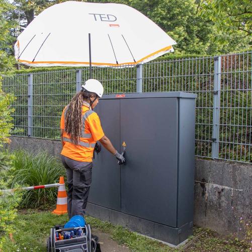 Le pack parapluie tente TED et son support de fixation a été conçu spécialement pour répondre aux besoins des techniciens et ingénieurs de terrain. Ce kit offre une protection complète contre la pluie, le vent et le soleil en alliant robustesse et simplicité d'utilisation avec son support pour fixer rapidement le parapluie-tente en toute sécurité.