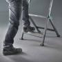 Ergonomique, sa structure en acier est doté d'une barre d'outil, pour avoir son matériel à portée de main, ainsi qu'une poignée de transport pour faciliter les déplacements une fois l'établi replié. Cette structure solide permet à l'établi pliable de soutenir une charge de 120 Kg tout en restant léger.