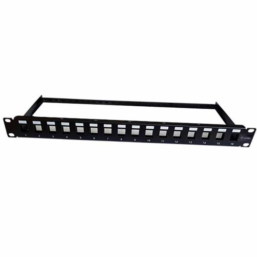 Panneau de brassage RJ45 19" d'une hauteur de 1U. Le panneau est doté de 16 ports afin d'y insérer des modules keystone rj45 de catégorie 5e et 6a afin de faciliter le cablage de baie de brassage. Une fois équipé de keystones, le panneau de brassage rj45 est capable d'accueillir jusqu'à 16 cable RJ 45 (cable cat 6, cable ethernet cat7, cat8 ...)