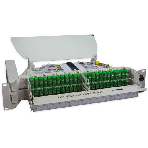 Tiroir 19" pivotant modulaire 2U 96FO SC/APC G.657A2 ouv gauche