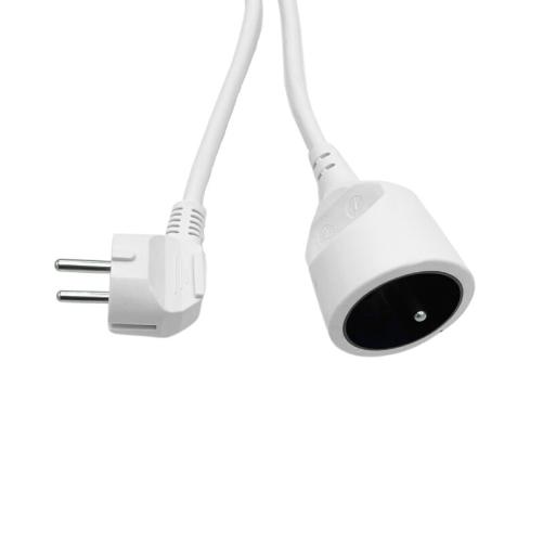 Rallonge secteur 2P+T Mâle/Femelle - Coudé/Droit - Blanc - 5m