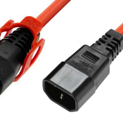IEC Lock - Rallonge secteur C13/C14 avec cage sur C13 - 1.5m Orange