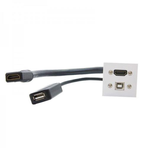 Plastron 45x45 HDMI 2.0 coudé 60° + USB2.0 amplifié F/F - 0.30/0.20m