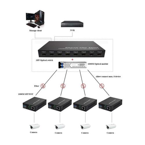 UPTEC - Switch 8 ports fibres & 2 ports RJ45 Gigabit